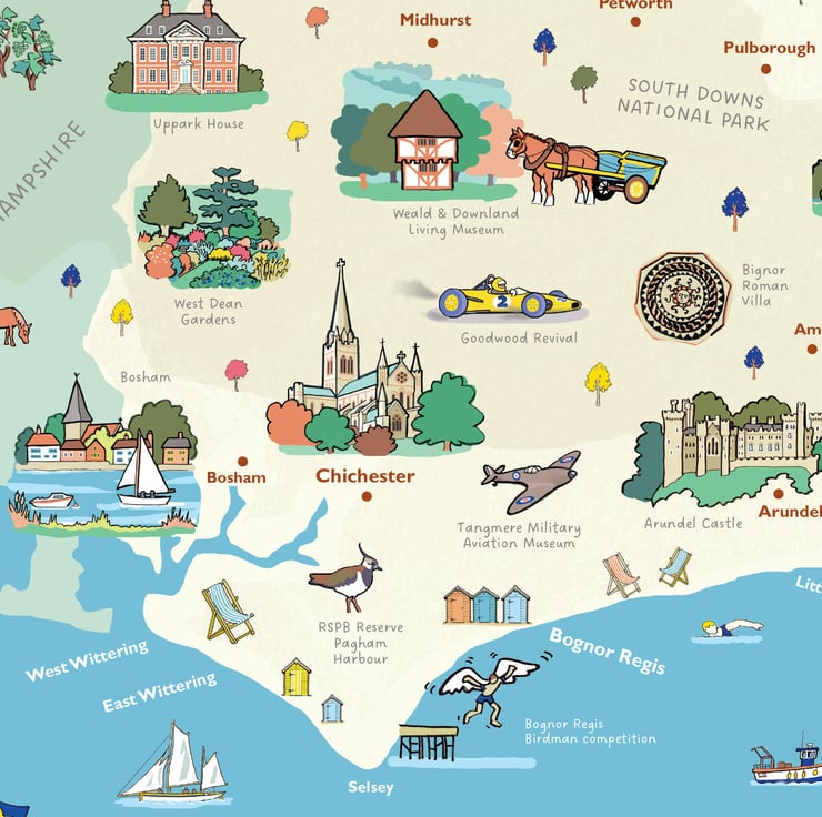 I'm hoping to eventually create illustrated maps of all the counties in Britain. Enjoyed exploring the delights of West Sussex.