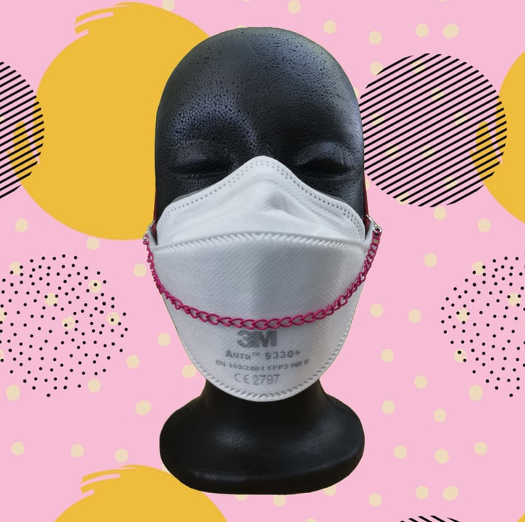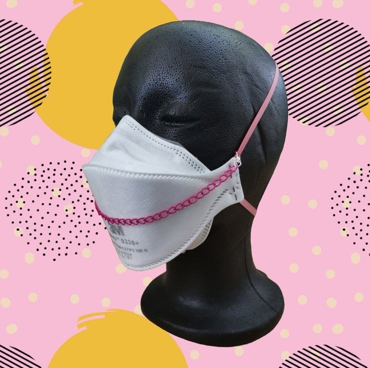 Mask chains are a great way of dressing up your mask, coordinating it with your outfit, or just making your respirator feel more 'you'. This hot pink aluminium mask chain with silver plated lobster clasps is lightweight and adds a splash of bright colour to your respirator. 24cm long as standard, or I can adjust it to your own measurements (recommended - see below!)