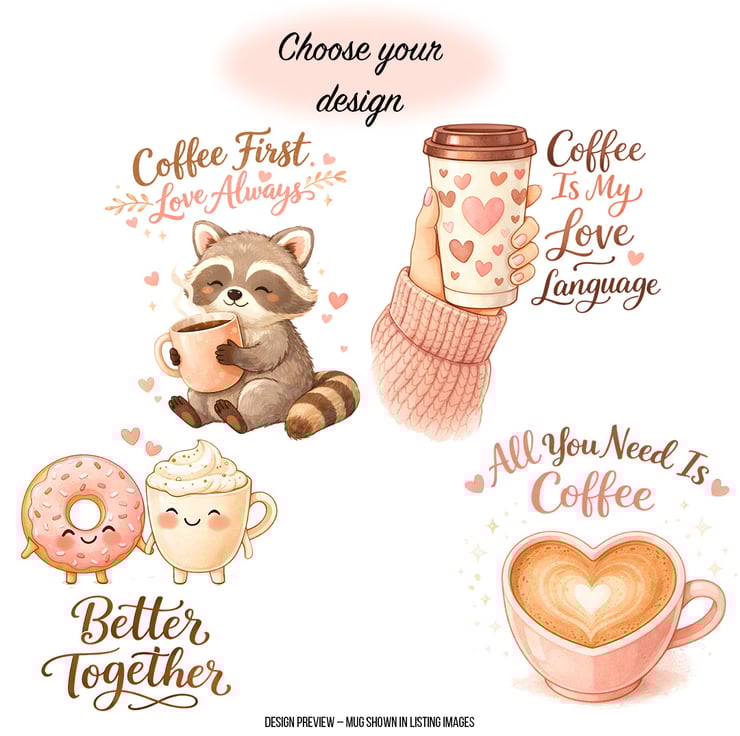 11oz Valentine Coffee Mug – Choose Your Design – Cute Coffee Lover Gift