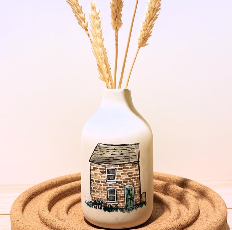 Custom Hand-Painted House, special place or Wedding Venue Vase Unique and quirky Gift by County Durham Artist LucyART