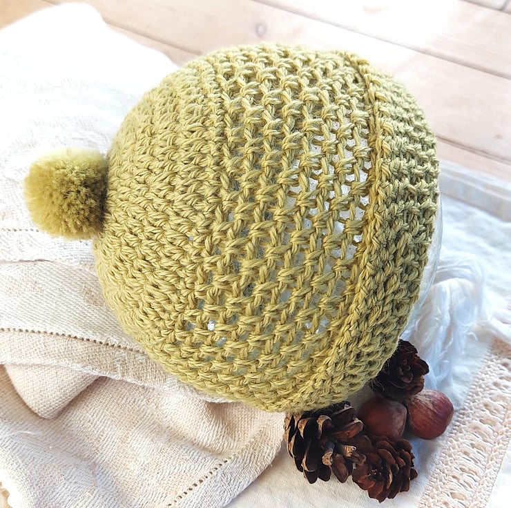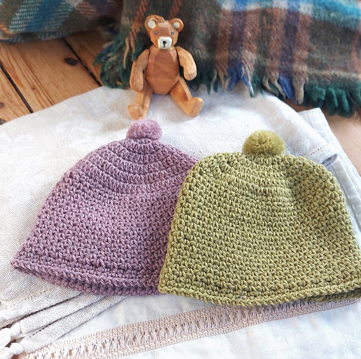 These items are not toys. Never allow your baby to play with them. Keep away from fire. Thank you. Hats can slip down and cover the baby's face during sleep. For safety reasons, you should generally avoid putting a hat or head coverings on babies when they go to bed. Every item may vary slightly in shape and size as each of them is individually made by hand. Please handle the items with care and wash them gently. Crocheted items can snag. If you find a looped or loose thread it is not a fault. Never pull but try to gently poke it back into place. Minor imperfections such as nuances in colours and shades, differences in thickness can occur in organic yarns, especially the undyed and untreated varieties. Please note that the actual colours might be slightly different due to photo lighting and/or monitor resolution of computers, tablets and mobile phones.
