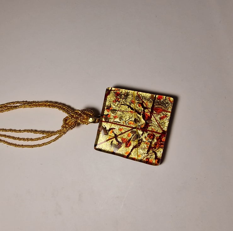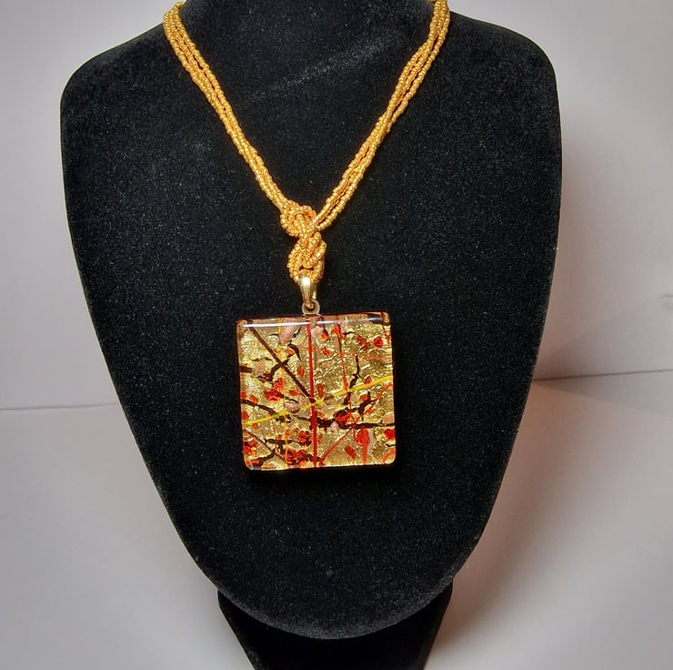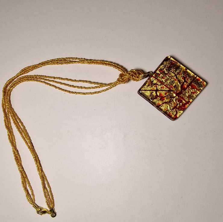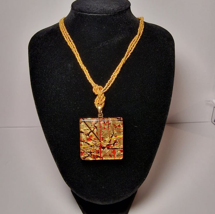 Murano glass pendant multi strand necklace featuring fold seed beads. As a part of my commitment to building a sustainable business the glass pendant is from an old necklace from a charity shop. This pendant necklace is absolutely stunning with a perfect simple design making the focal point of the necklace the pendant.