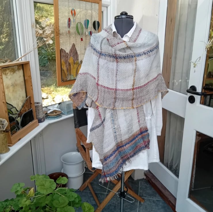 The cloth is a loose weave woven on a vintage Harris converted table loom.