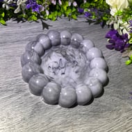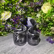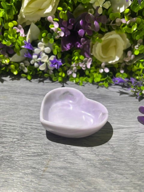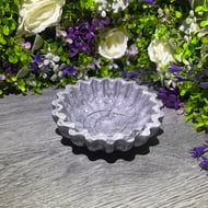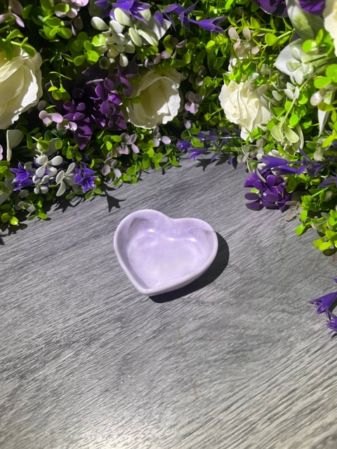 A handmade mini heart dish in white, purple and silver. Approximately 7.1cm x 8.3cm x 2.5cm, perfect for jewellery, chocolates, trinkets, you name it! Each piece is unique and comes gift-wrapped, perfect for gifting or treating yourself.