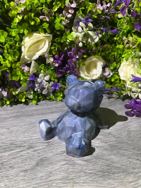 A cute teddy bear in blues and black. Designed to securely hold your phone while adding a fun decorative touch to any desk or bedside table. Measuring 7cm x 10cm x 8.5cm, its compact, sturdy and ideal for hands free viewing. Each piece is unique and comes gift-wrapped, perfect for gifting or treating yourself.
