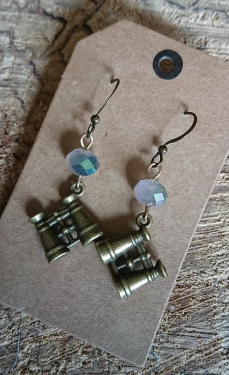Opera glasses and binoculars are common accessories in Steampunk designs and costumes and these earrings will add style to many Steampunk themes.