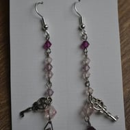 Antique brass effect binoculars with a smoky grey and pink 2 tone crystal. Approx drop is 3.5cm.