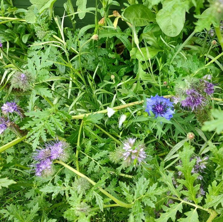 Nigella, Zinnia, Sainfoin, Purple Tansey, Burnet, Mixed Clovers, Nasturtium,vDahlia,Blue Lupin, Mixed Cosmos, Yellow Blossom Clover,