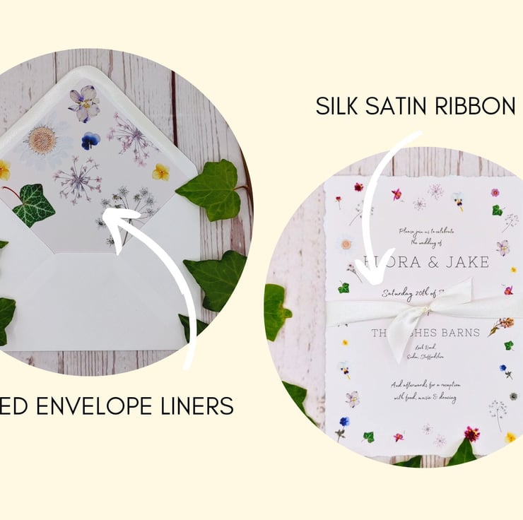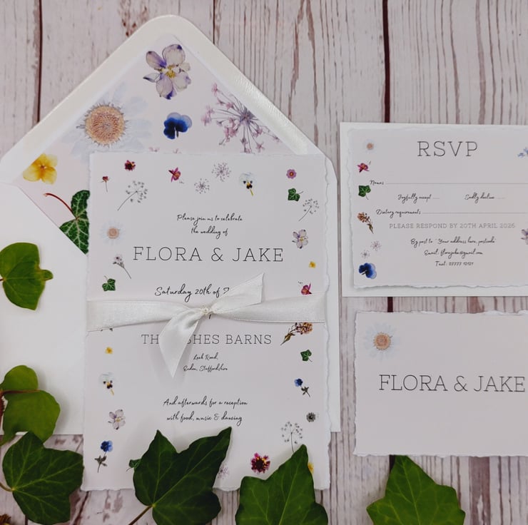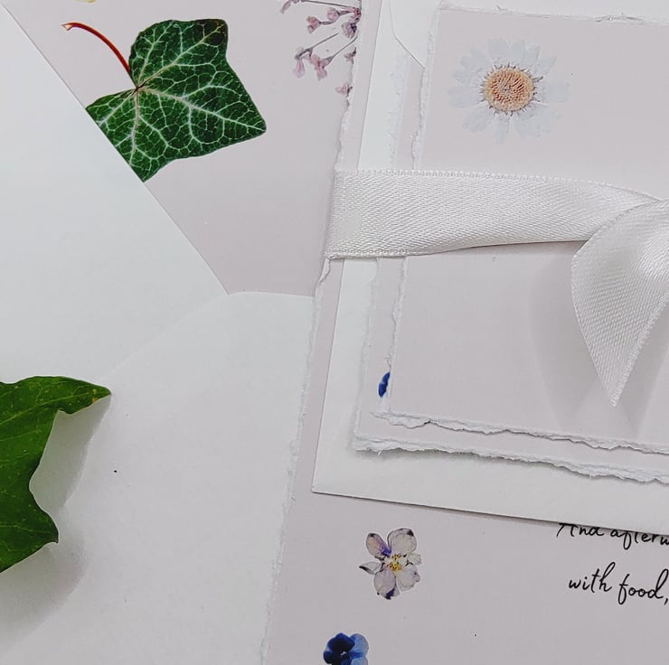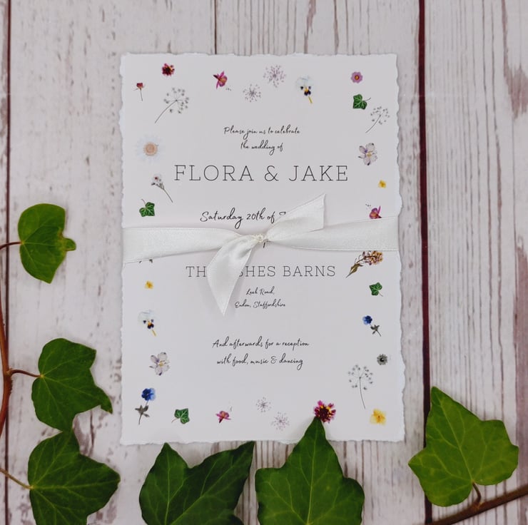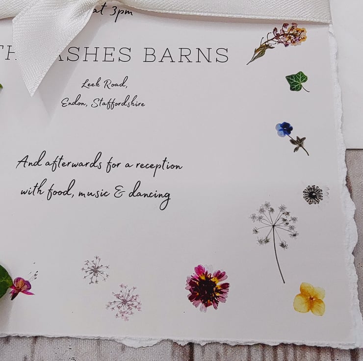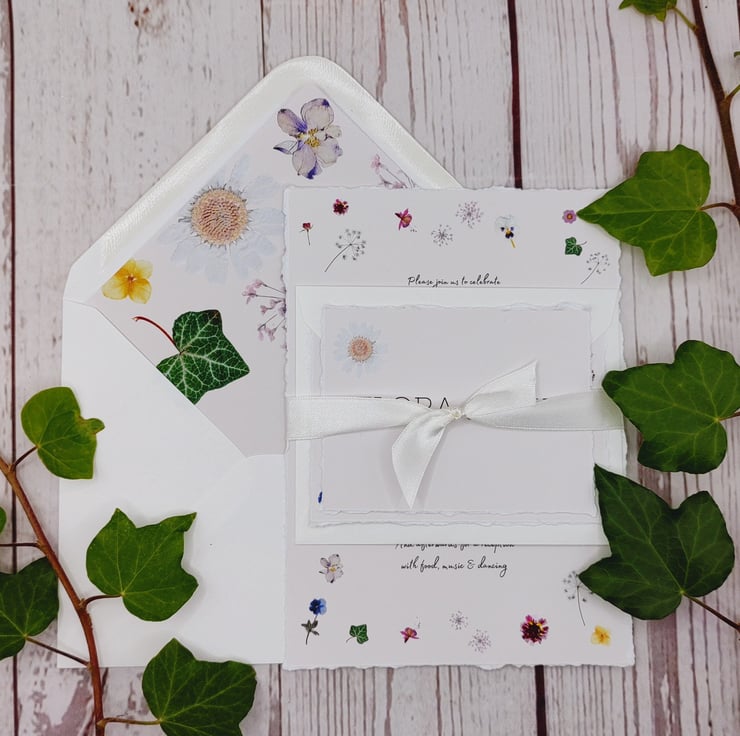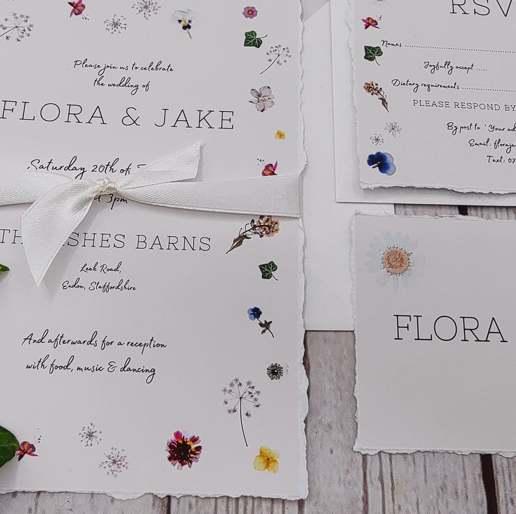 Handmade with love! Pretty printed pressed flowers wedding invitations