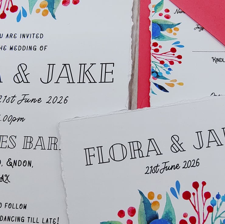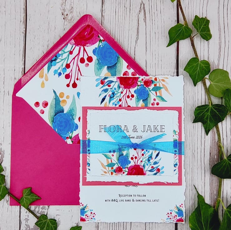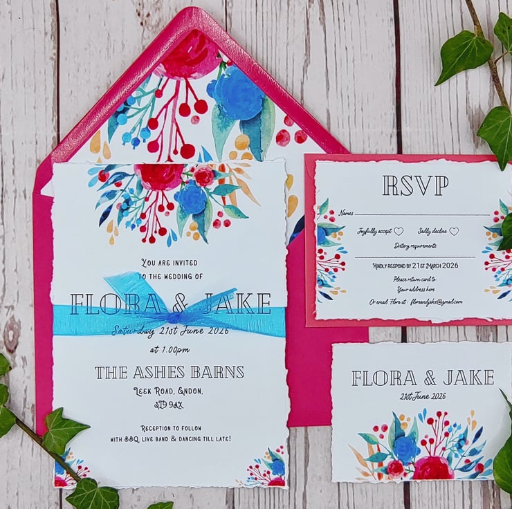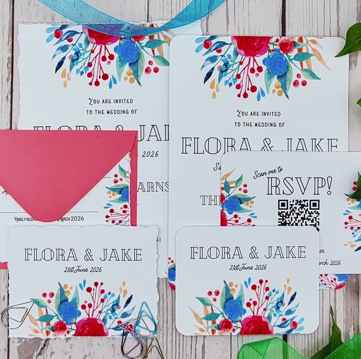 Handmade with love bright watercolour floral wedding invitations