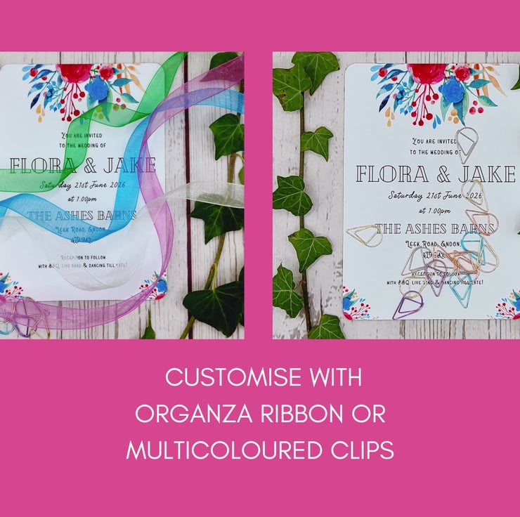 Use the drop down menu and personalisation box to customise your invitations