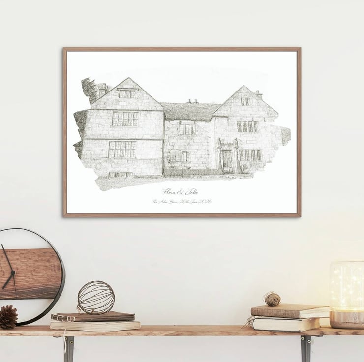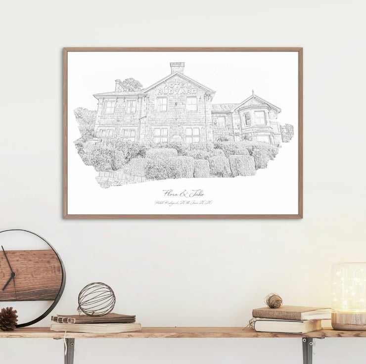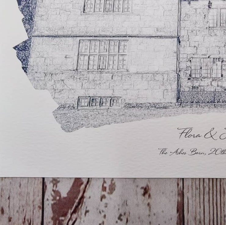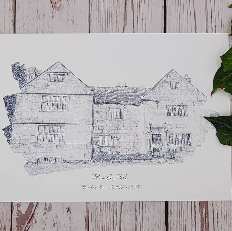 Your wedding venue transformed into a pencil watercolour sketch style print..
