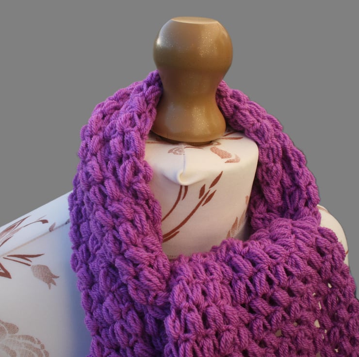 I was drawn to the pretty orchid yarn and thought it would make a beautiful scarf particularly in the textured bean stitch design.