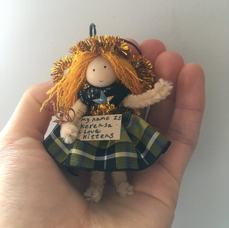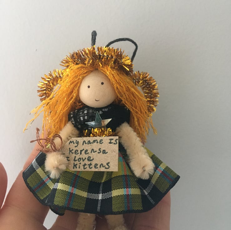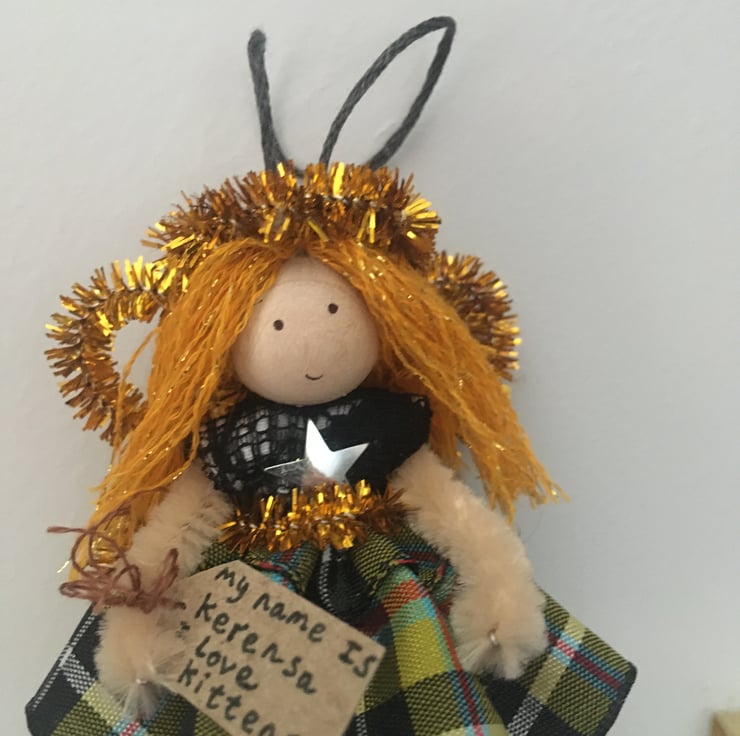 She has a tag which states her name and something that she loves. This little fairy is called Kerensa and she loves kittens.