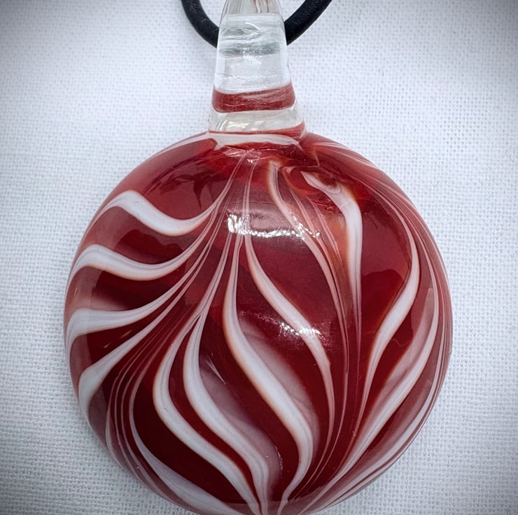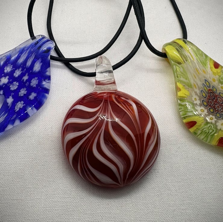 This is a beautiful piece of handmade Murano glass that I bought and turned into a pendant with a 20"/50cm black leather thong with handmade silver wire wrapped fastenings and sterling silver lobster clasp. The glass piece measures 5.5cm x 4cm approx.