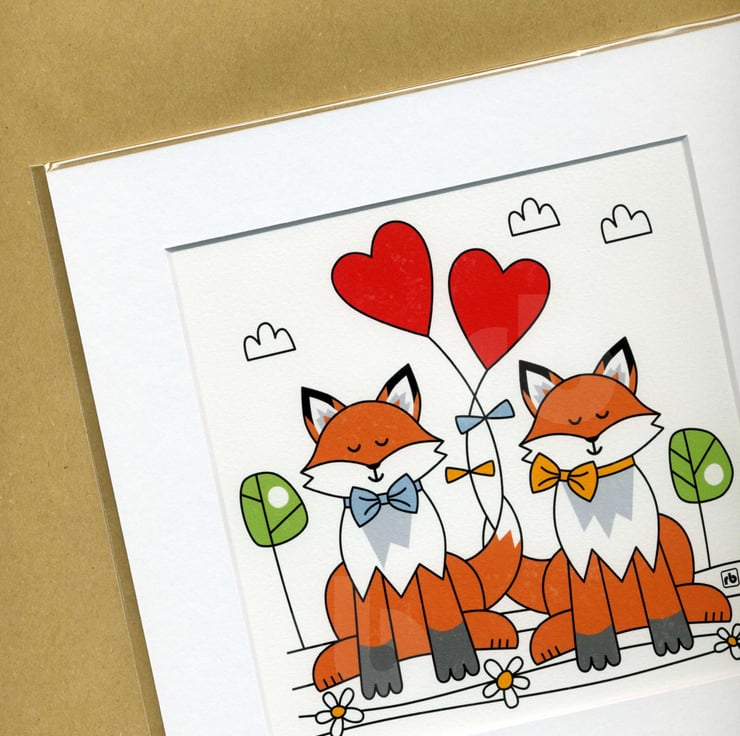 This design © is inspired by the foxes in my allotment. Beautiful, fun and so much a part of my life and love of the wildlife around me. This foxy image is individualy printed onto 190gsm archival textured, watercolour paper, using rich, archival Lucia Pro inks. The print is not sold with a frame, however, I have mounted it into a white, acid free, bevel edge mount so that it is ready to pop into your favourite frame.