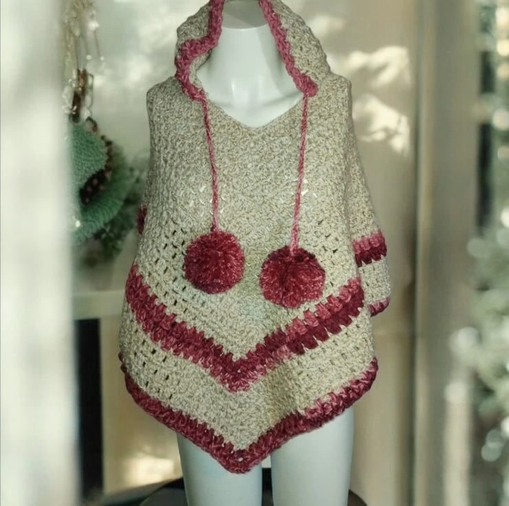 "Stay stylish and cosy this season with our handmade Wild Berries poncho.