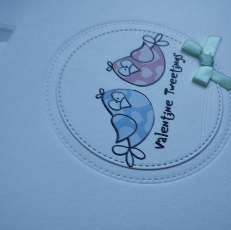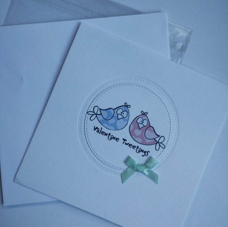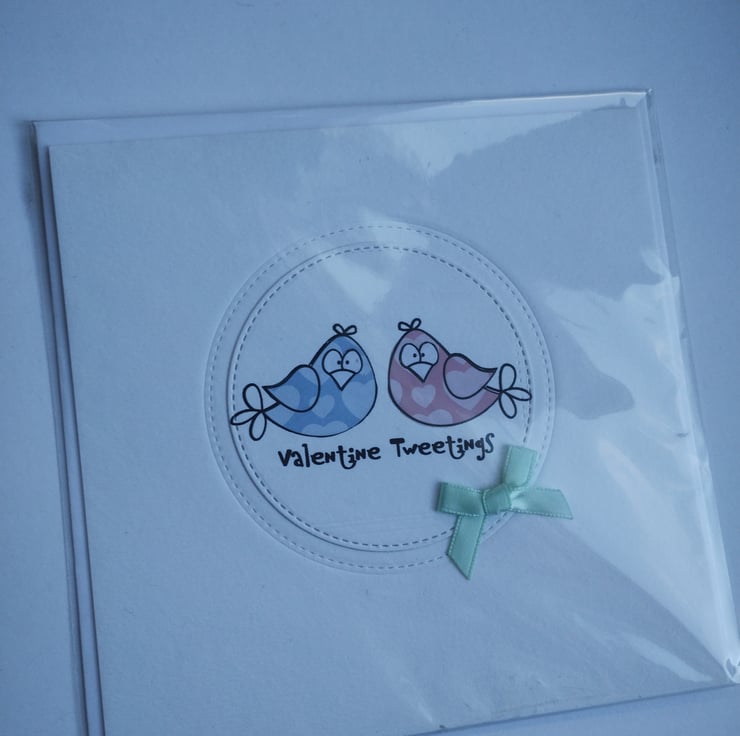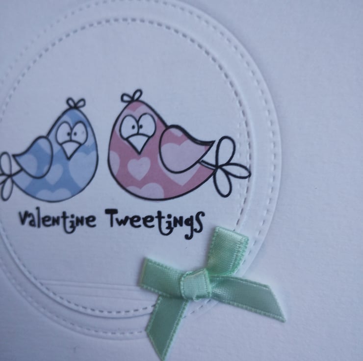 Valentine Tweetings - handmade Valentine's Card with cute birds pink and blue