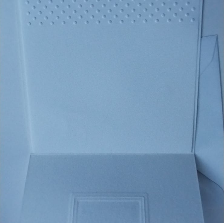 This is a top fold / tent fold card and has a inner paper leaf embossed with a strip of dots and left blank for your message. The card measures just under 6" square and comes with a white envelope. It will be posted in a cello bag to ensure it reaches you in perfect condition.