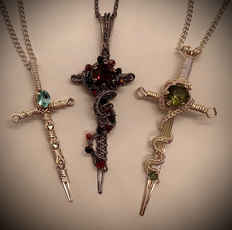 I had seen other wire wrap artists make different sword pendants on YouTube and decided to create my own designs.