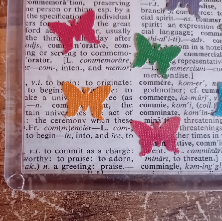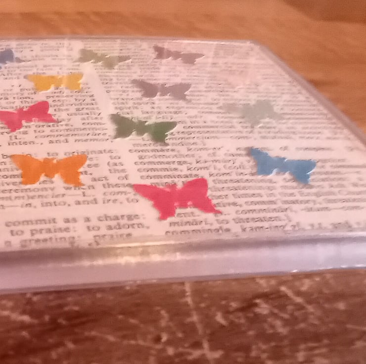 These coasters have been made using old book pages and butterflies cut out from paper from previous projects
