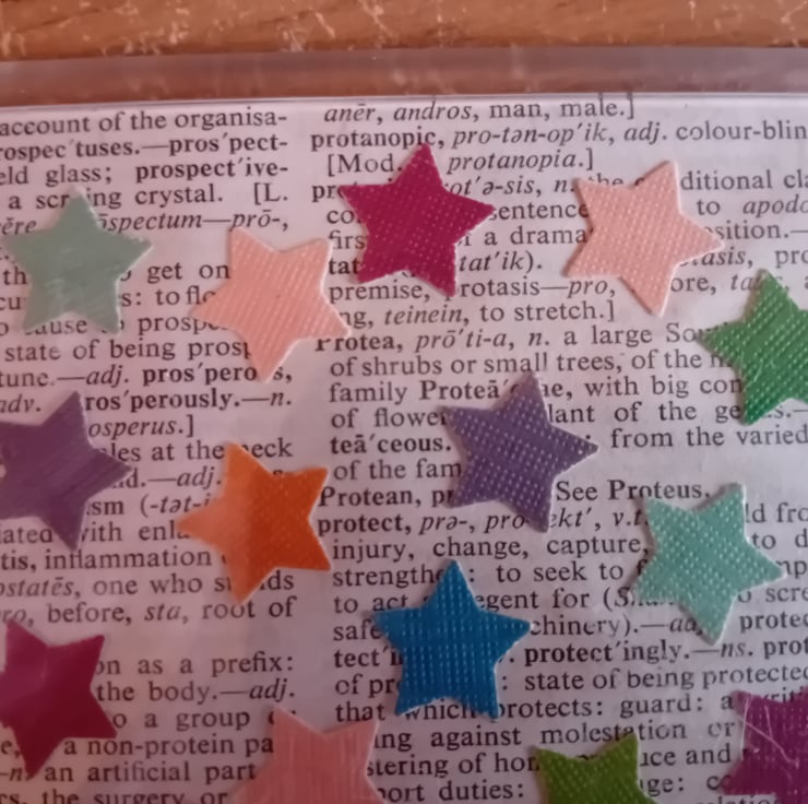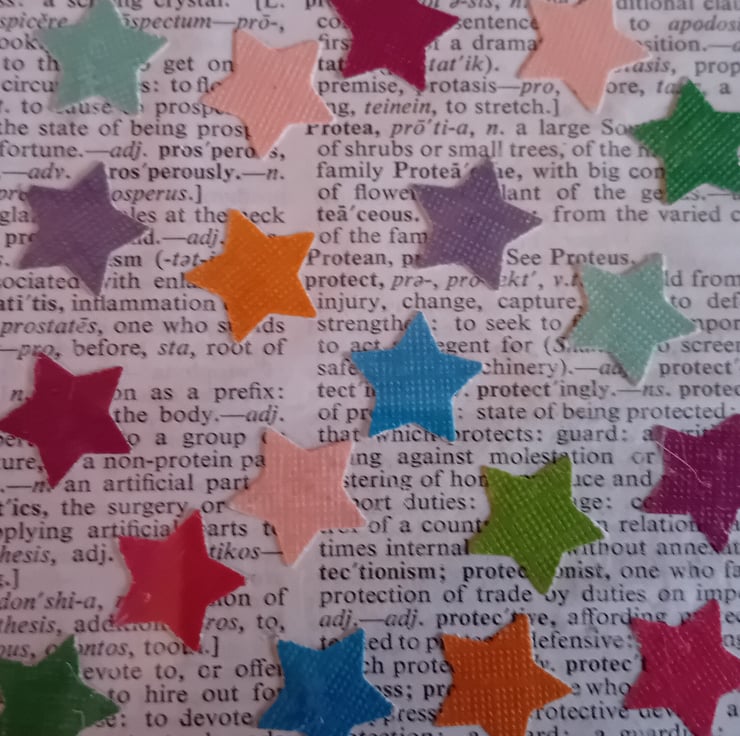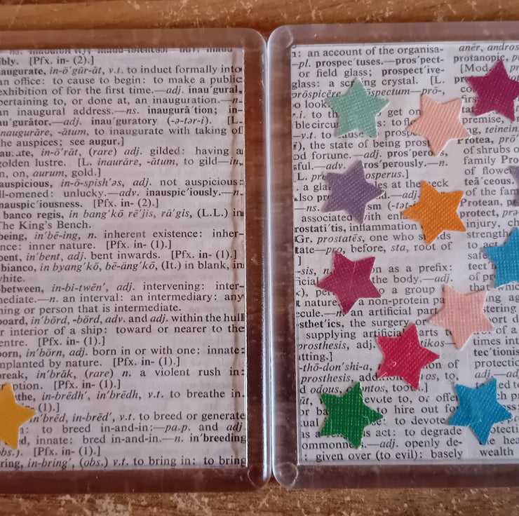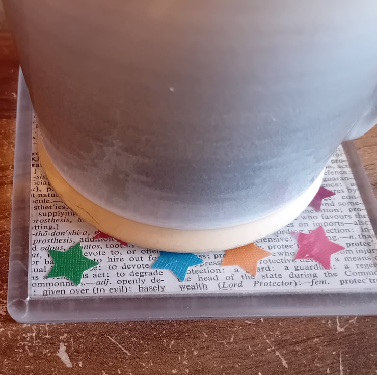 These coasters have been made using old book pages and stars cut out from paper from previous projects