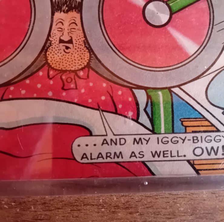 The image shows Desperate Dan trying to wake up in the morning