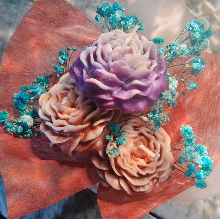 This eye-catching candle is designed to look just like a wrapped flower bouquet – perfect for adding a quirky, cozy touch to your space or surprising someone special!