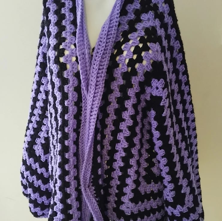 Handmade Crochet Hexagon Cardigan Purple Black Granny Square Goth Boho Oversized