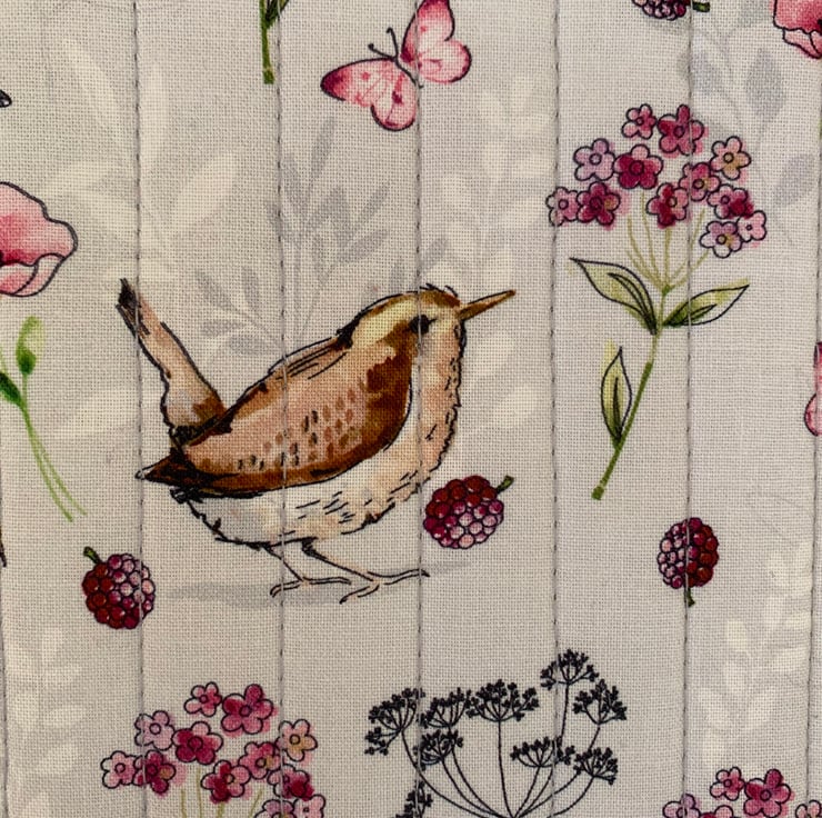 It is made in this beautiful wren, flowers, butterflies and fruits design fabric.