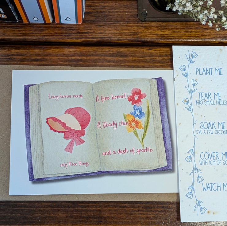 Inspired by books, storytelling, and the quiet confidence of literary heroines, this card was designed as a gentle and thoughtful form of encouragement.