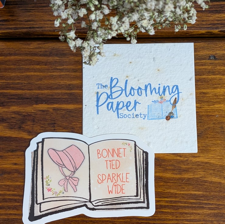 The set includes a greeting card featuring a literary-inspired illustration and message, a plantable bookmark made from seed paper, and an eco-friendly, splash-proof sticker as a keepsake. Once the bookmark has been used, it can be planted to grow wildflowers — a thoughtful detail that lasts beyond the card.