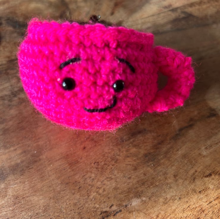 Meet Tina, a tiny handmade crochet teacup keyring with a cute, cheerful expression! Crafted from soft yarn and finished with safety eyes, she’s the perfect little companion to brighten your keys, bag, or backpack.