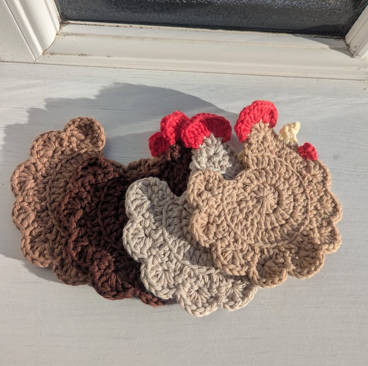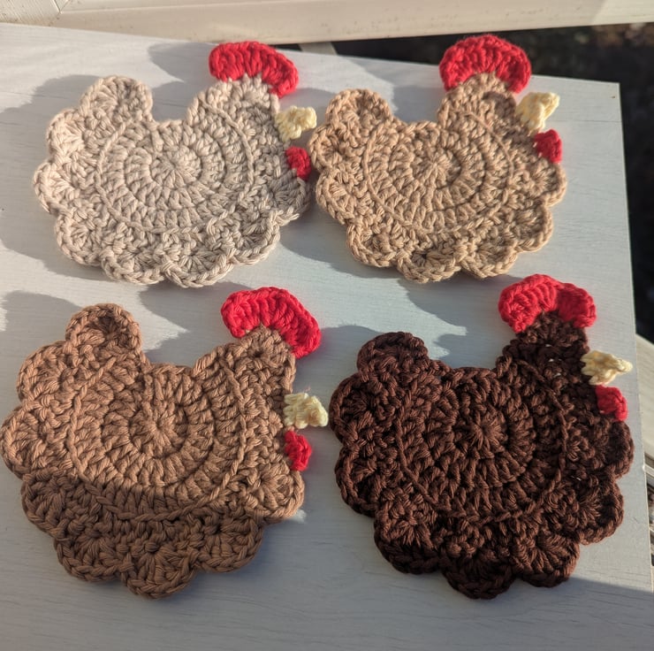 These cotton crotchet coasters are the perfect addition to you afternoon tea or coffee! The all brown chicken coasters are the perfect country feel or a quirky conversation starter for you and your guests!