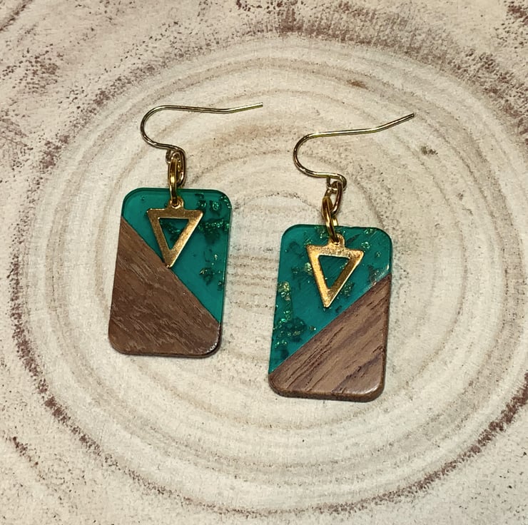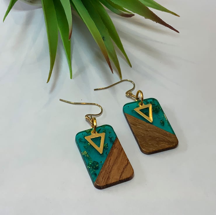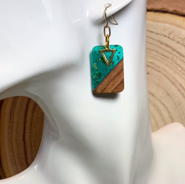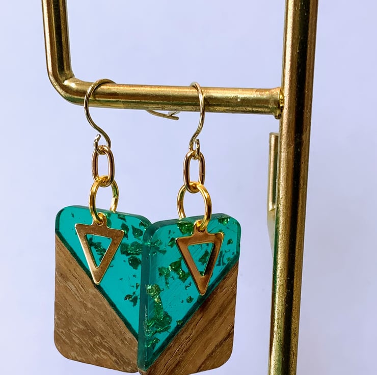 An elegant design made of walnut wood and sea green resin with gold foil inset.