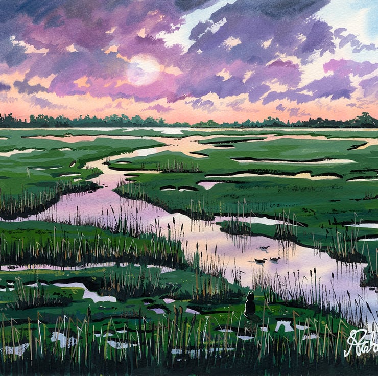 Ouse Fen, Cuckoo Fen, Over, Cambridgeshire. This is a unique framed memorabilia art print direct from myself the artist. My artworks are a celebration of Rural Cambridgeshire and UK Landmarks & architecture.