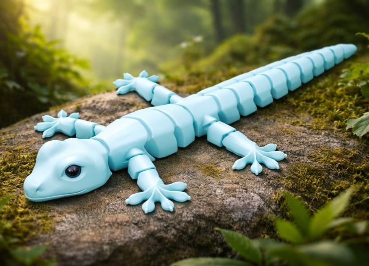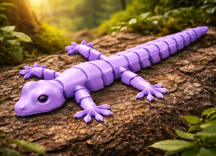 Bring character and movement to your space with this 3D printed articulated flexi gecko. Designed with multiple linked segments, the gecko bends and poses naturally, making it a fun desk toy, display figure, or collectible piece for reptile fans, gamers, and 3D print enthusiasts.
