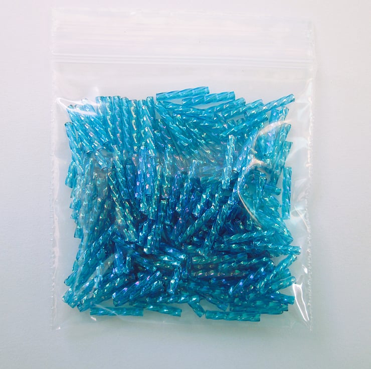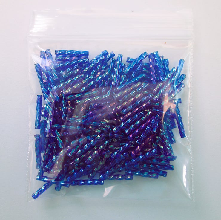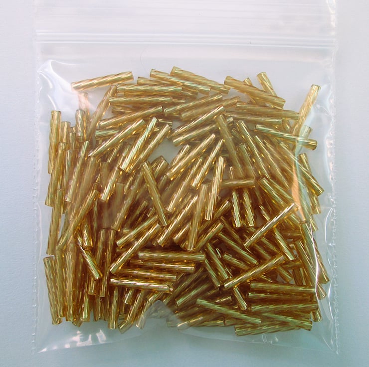 12mm bugle beads in gold, silver, royal blue and turquoise. 43g in total
