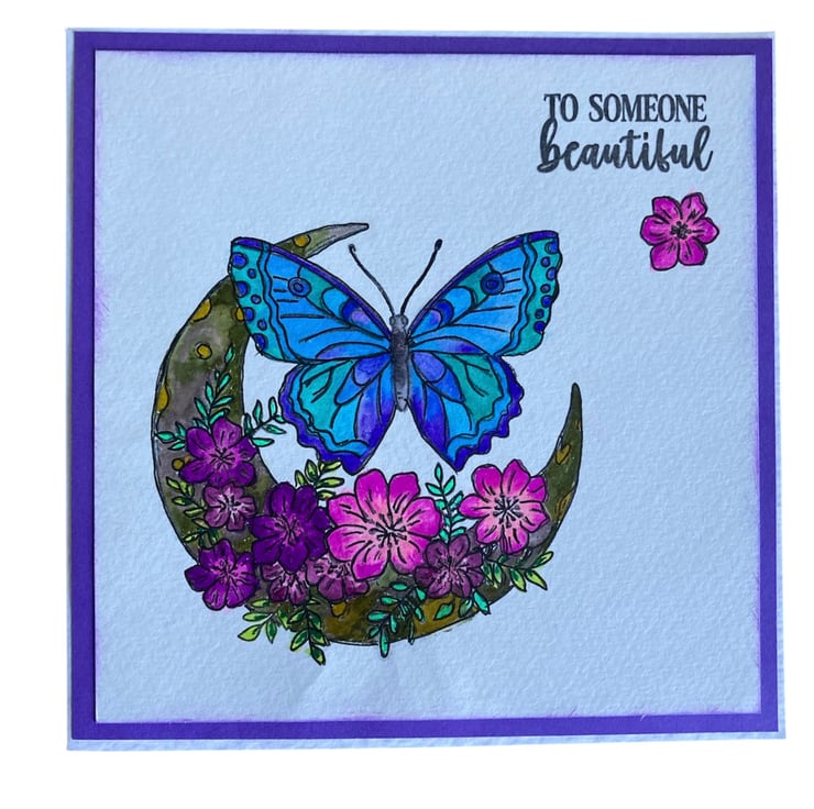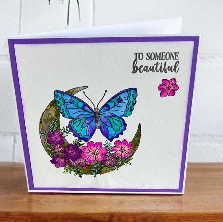 Butterfly & Moon Greeting Card – “To Someone Beautiful“. Blank for any Occasion