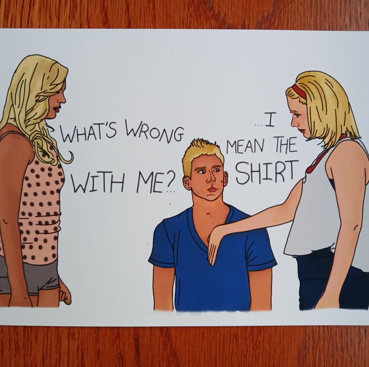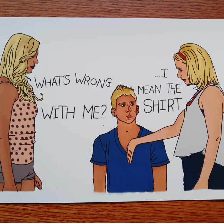 Print or greetings card of my digital illustration of Michelle Eldon and Emily S1 of The Next Step, with quote text.
