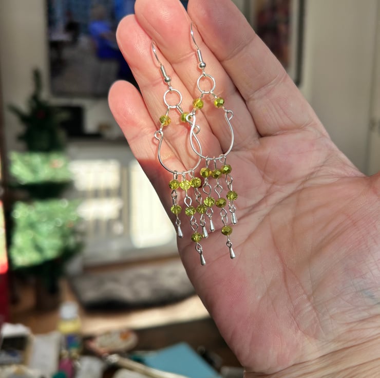 I have made these beautiful earrings with tarnish resistant silver plated jewellery wire. The crystals are all vibrant and excellent quality. The statement design of these earrings are sure to attract attention.