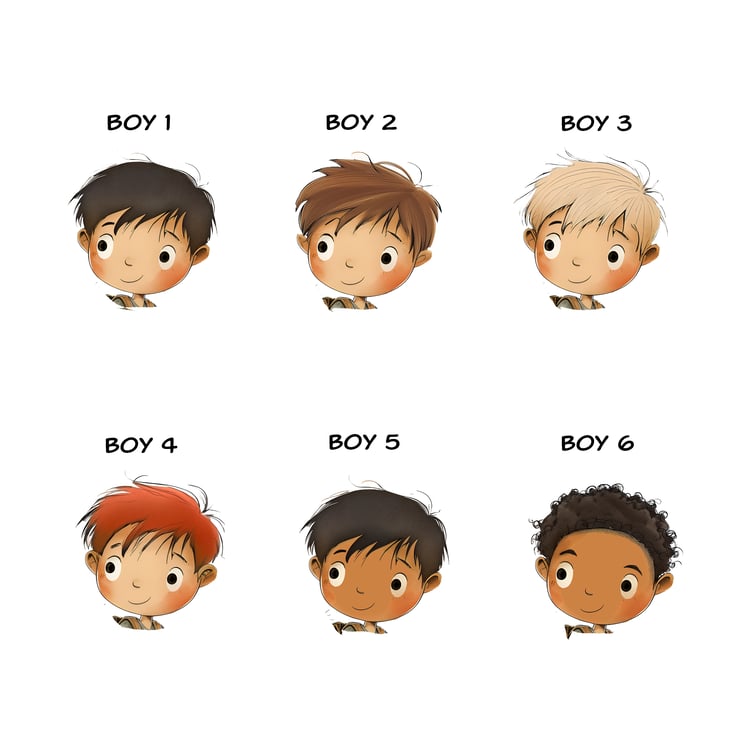 Personalise the book by sending us the boy’s name and your image choice via the contact link in our shop, quoting your order number.