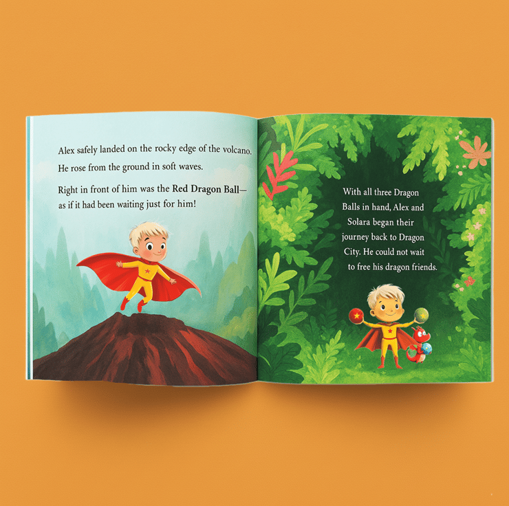 This Superhero Dragon Book lets your little one become the hero of their own adventure. Your child becomes a brave superhero rescuing dragons by finding three enchanted dragon balls, discovering courage, friendship and determination along the way.