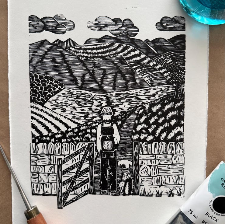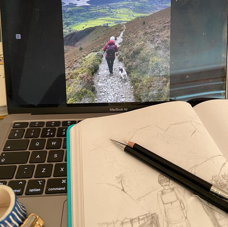 The image is fictitious but based on one of my favourite areas the Lake District. one of my favourite ways to spend the day is to head into the Lakeland fells with my husband and fox terrier, Vera.