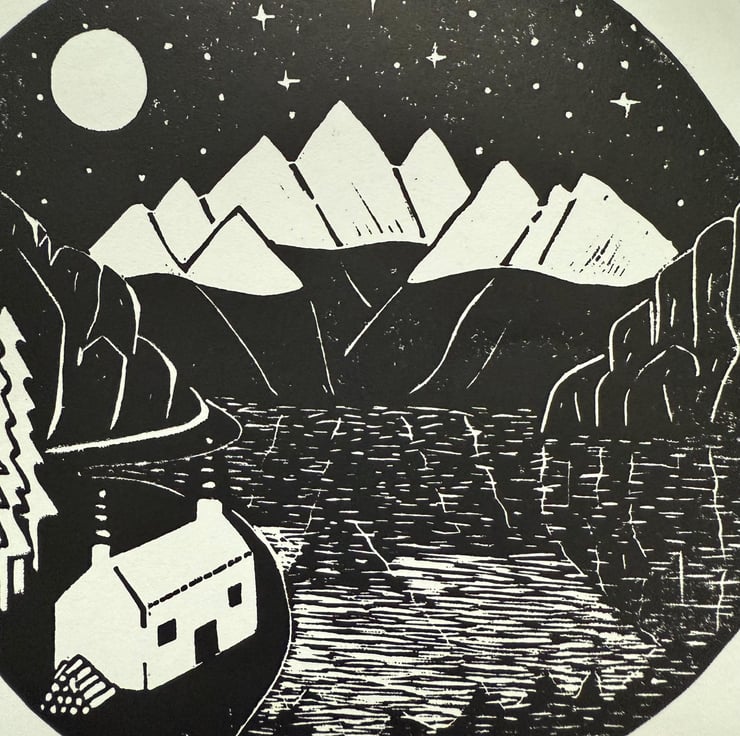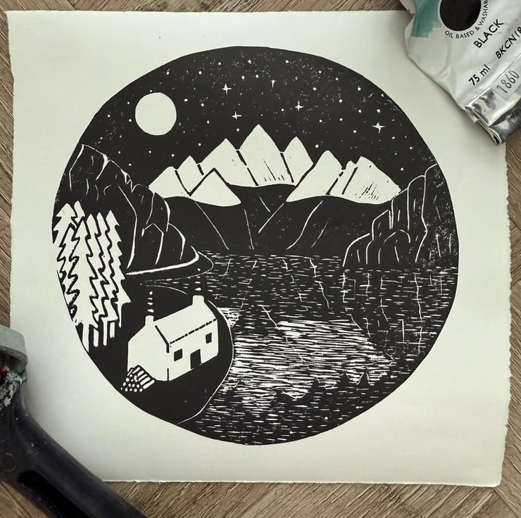 Each print is made using Caligo Safewash inks and is hand burnished onto quality Zerkal paper using a baren. This means every print I make is individual and unique and that slight variations may occur in the printing process.