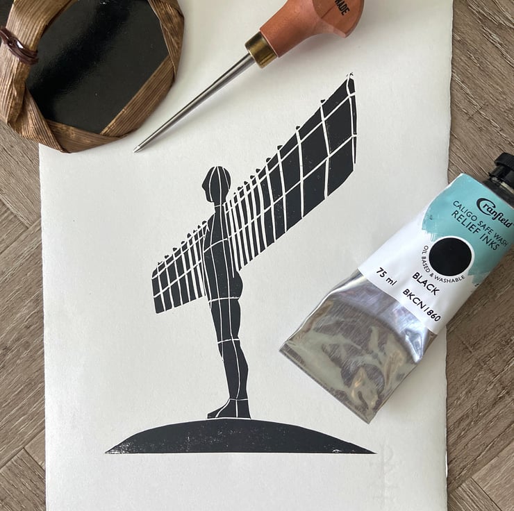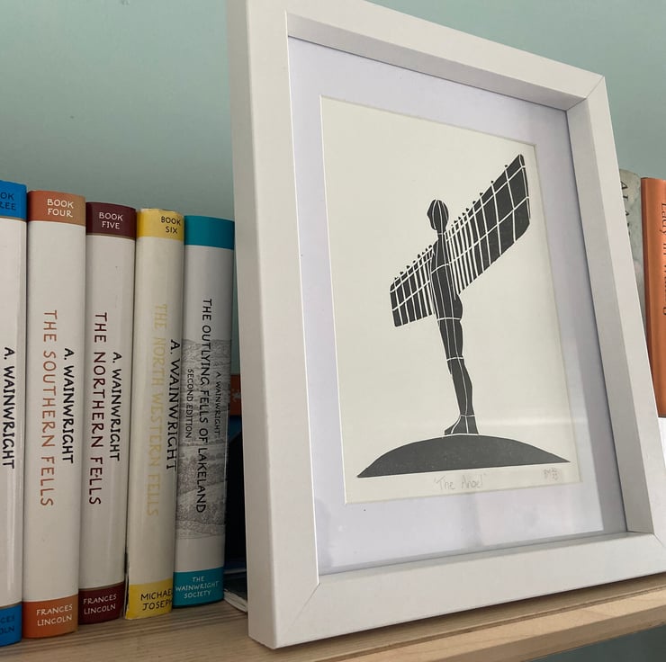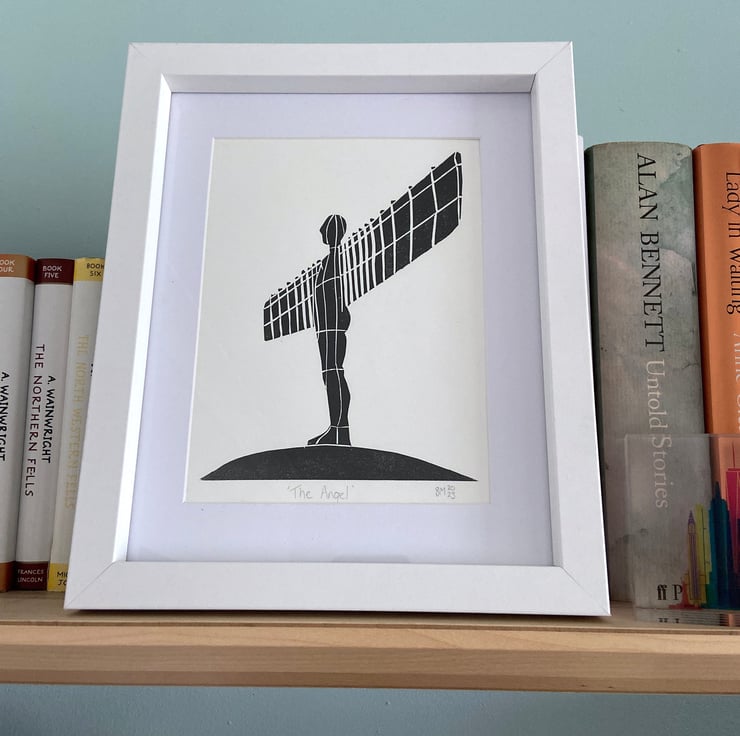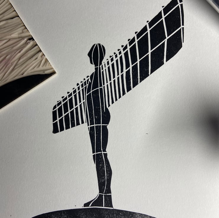 I'm lucky enough to live within walking distance of Anthony Gormley's iconic statue and it never ceases to amaze how many people visit, no matter the time of day or weather - which let's face it is often rotten in North East England! It seemed fitting that this should be one of the first lino prints I produced.