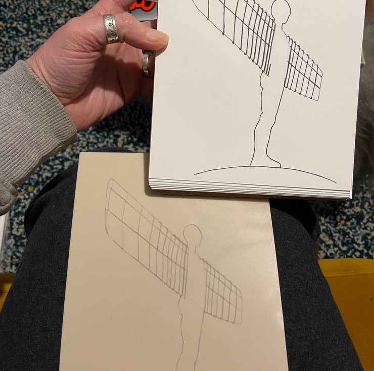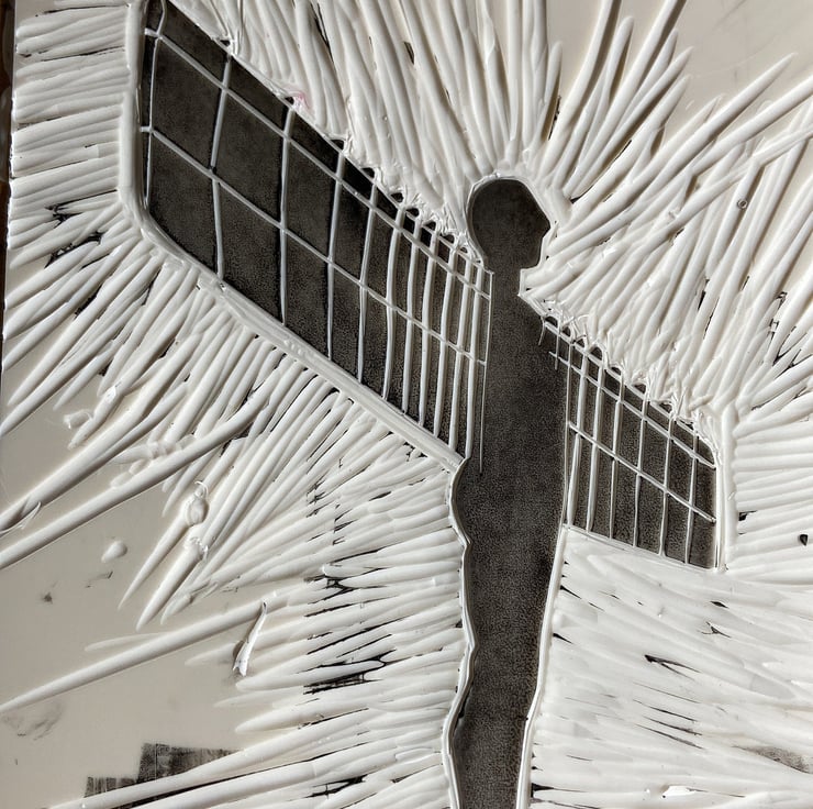 A hand burnished print of a lino cut taken from my original drawing of the Angel of the North.
