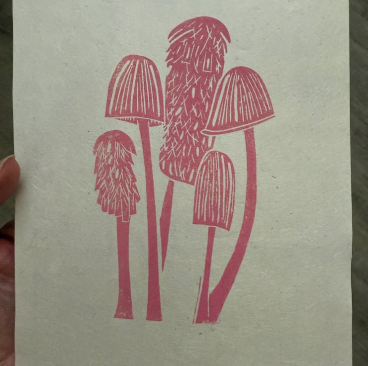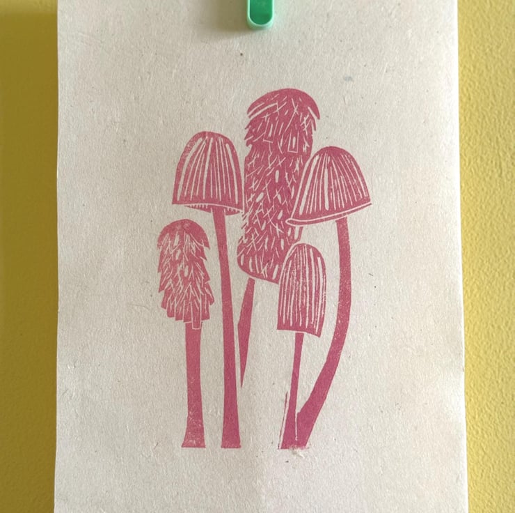 Mushroom Linoprint: Hand-Burnished Fungi Art Print on Lokta Paper