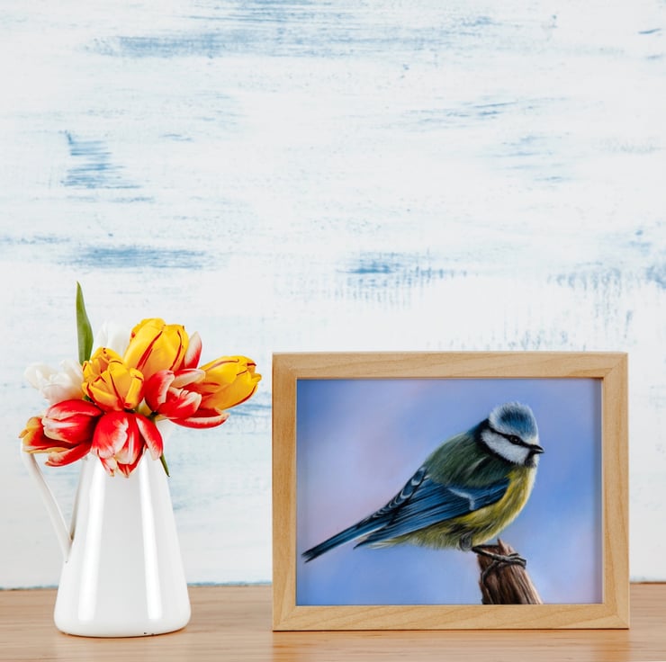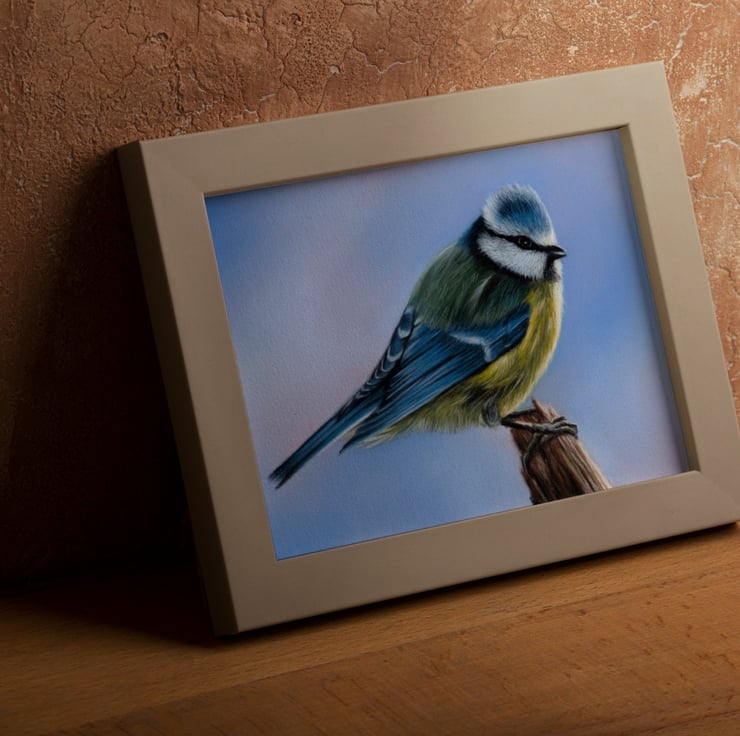 A portrait of a blue tit in soft pastels. This is an original work of art. A unique, one-of-a-kind gift.