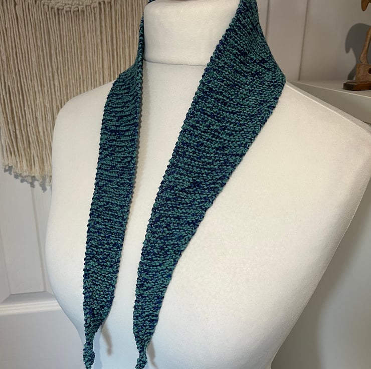 Aqua and dark blue shimmer Cotton Mix Yarn Handknitted Neckerchief 100cms long
